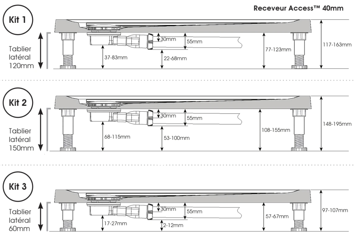 • Conçu pour rehausser votre receveur Access™ lorsque la configuration de la Salle de Bain ne permet pas de poser ou d’encastrer le receveur dans le sol